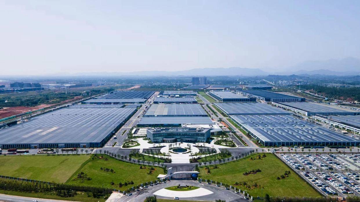 上饶经开区经开大道旁,一座绵延一公里的单体建筑吸引了嘉宾们的注意,这就是调研的第二站——全球领先的太阳能光伏企业晶科能源制造基地。